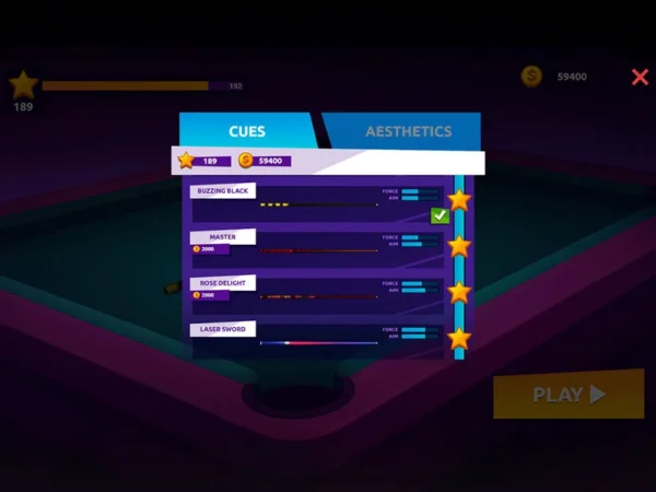 Players take turns trying to pocket all of their allotted balls (stripes or solids) and then the 8-ball. You have 30 seconds to take each shot. Get prize money to get new cues and table skins. To win matches, you need to outscore your opponent by playing smart.