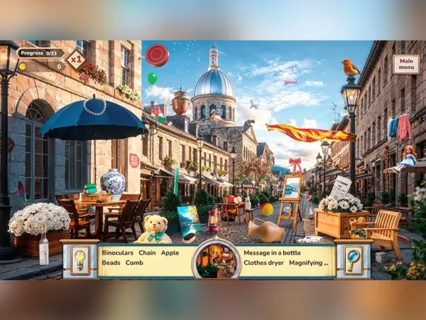You find hidden objects in pretty locations. You solve puzzles and fix broken pieces of history. You explore eight different countries. You visit castles in the Czech Republic and old streets in Portugal.